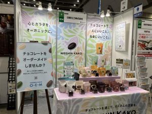 ブースでは、オーガニックジョイチョコレートシリーズ、サステナブルチョコレートシリーズの他アレルゲンフリーチョコレート スイートカカオ62%をご紹介させていただきました。