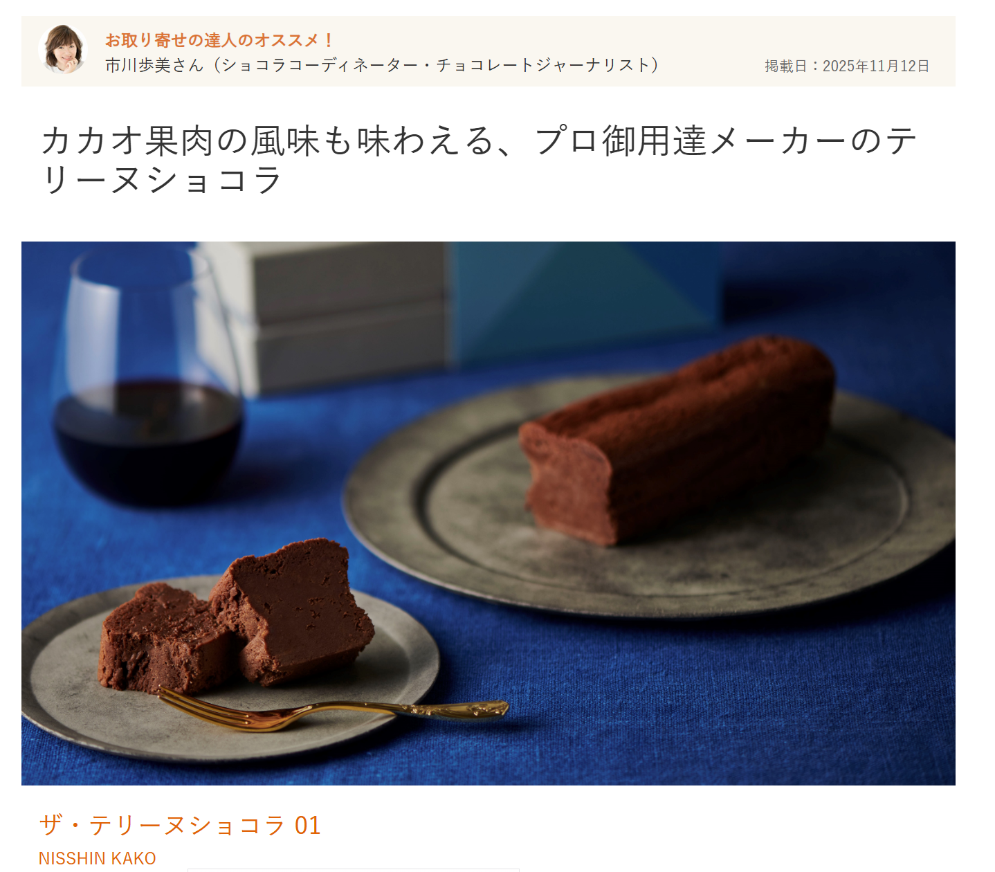 このたび、チョコレートジャーナリストの市川歩美さんに、弊社の「ザ・テリーヌショコラ 01」をご紹介いただきました。