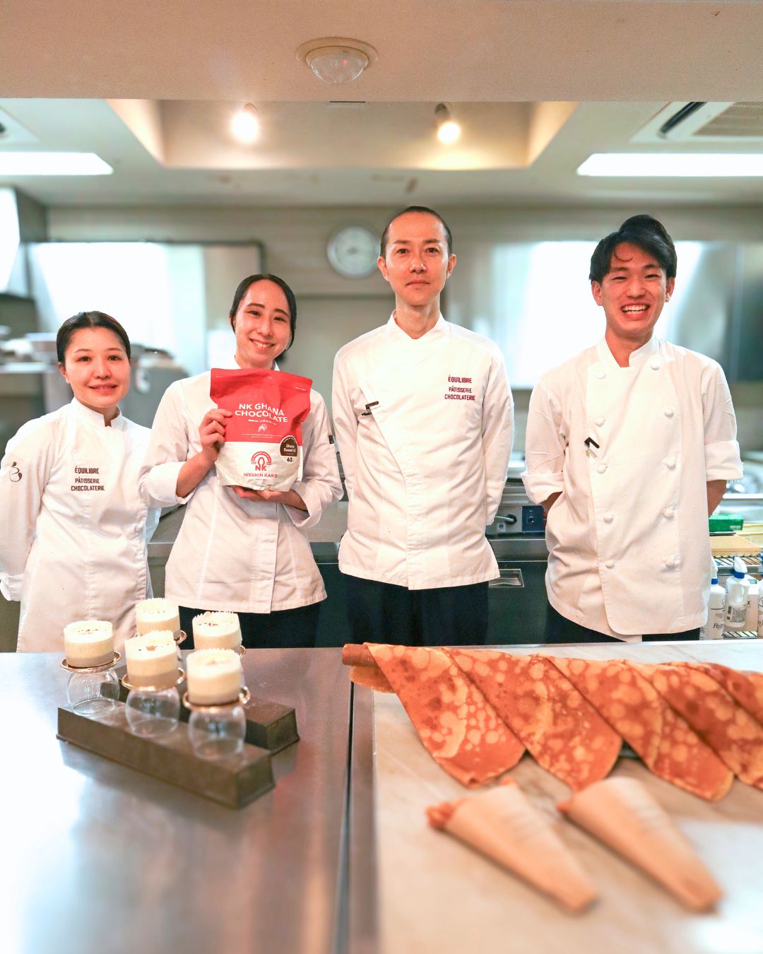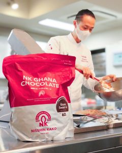 「NKガーナスイート62」について、徳永シェフからは「味のバランスが変わることなく、普段のショコラと同じ感覚で扱えました」とのコメントをいただきました。プロの厳しい基準においても、作業性や風味の安定性を評価いただけたことは、私共にとっても大きな励みとなりました。