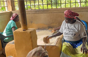 1つ目は、キャッサバ加工場の建設。ガーナの主食キャッサバを伝統食品「ガリ」に加工する施設を、カカオ生産が盛んな村の中心に建設しました。女性たちが主役となって副収入を生み出し、その収益で井戸の掘削や学校の屋根修繕を行うなど、”物資を配る支援”ではなく”自立の仕組みを残す支援”として設計。現在では近隣5つのコミュニティが共同利用する拠点へと発展しています。